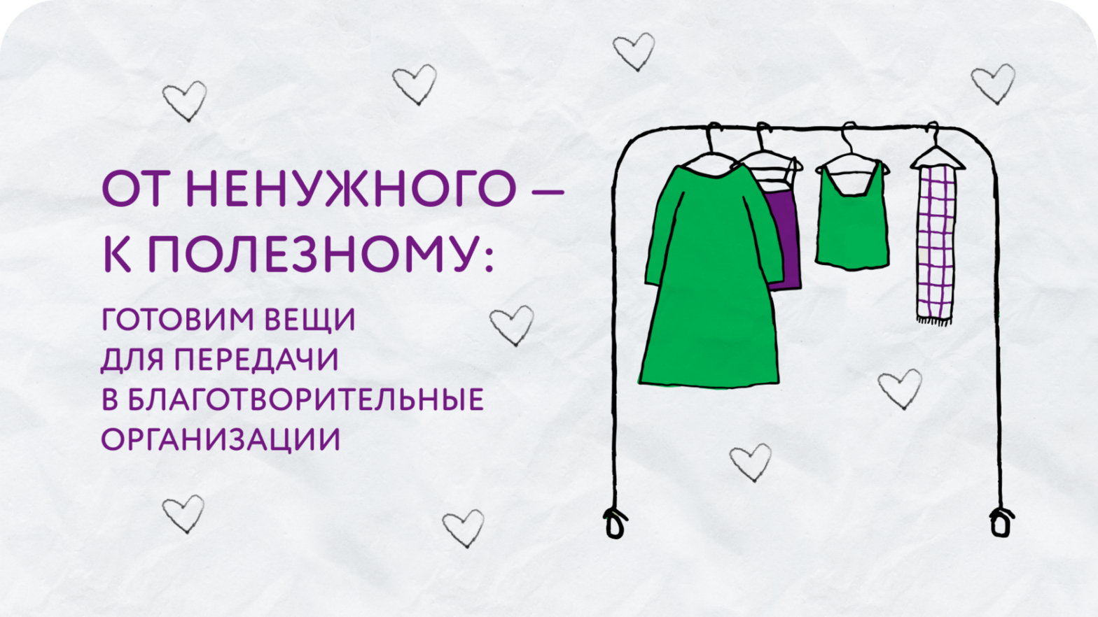Перед тем как отправить вещи в благотворительный фонд, важно соблюсти некоторые правила. Это облегчит сортировку и переработку, а также увеличит шансы, что одежду снова будут носить. О чём стоит позаботиться перед передачей: Уточните на сайте благотворительной организации, в её соцсетях или по телефону, какие вещи и в каком состоянии можно отдать. Постирайте и высушите одежду.… Читать далее Как подготовить вещи для передачи в благотворительную организацию